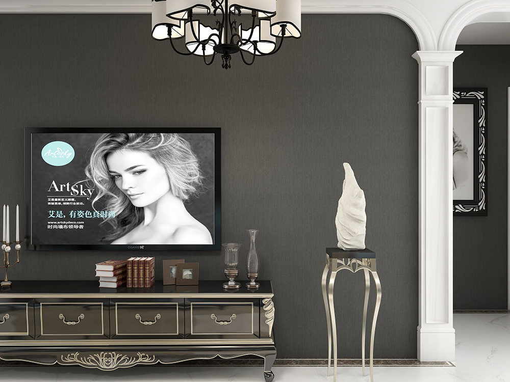 SLT4B-花黑灰H竹炭纤维无缝墙布装修案例效果图